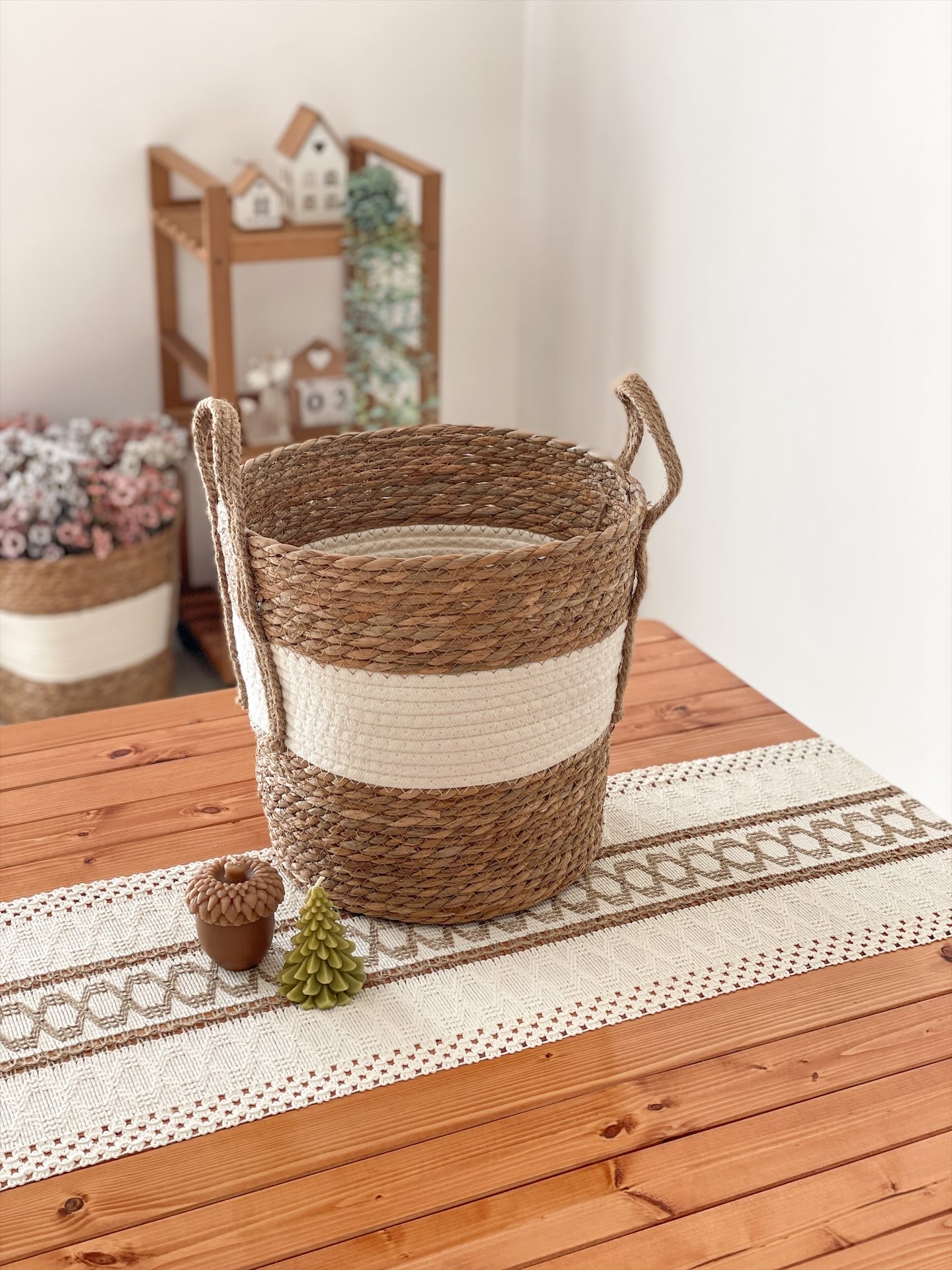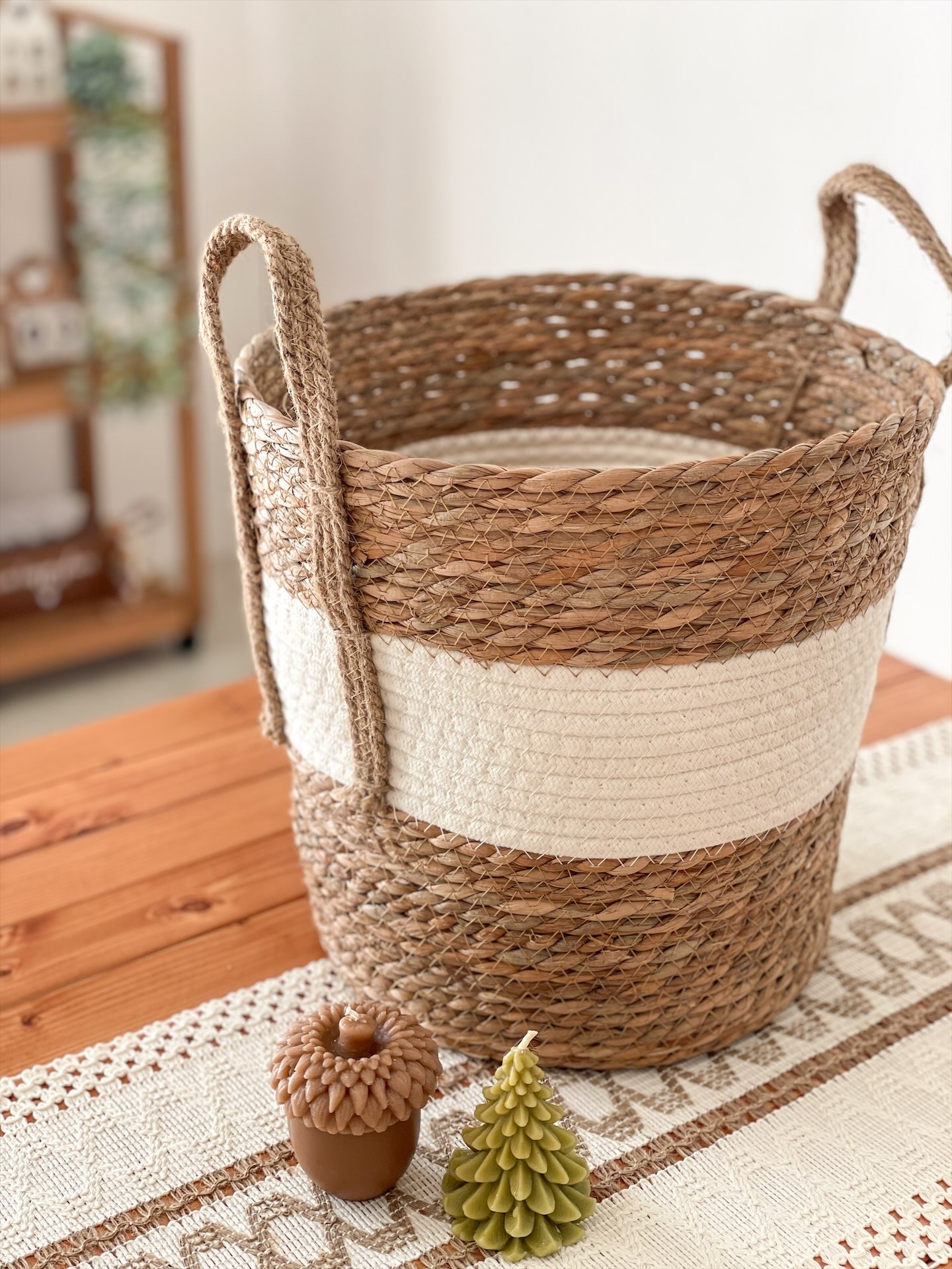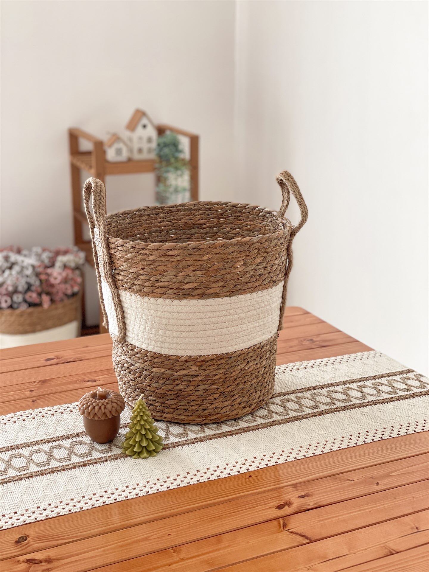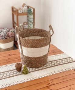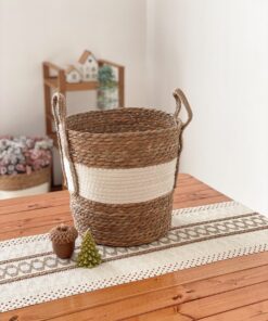 سبد حصیری دو رنگ سایز متوسط