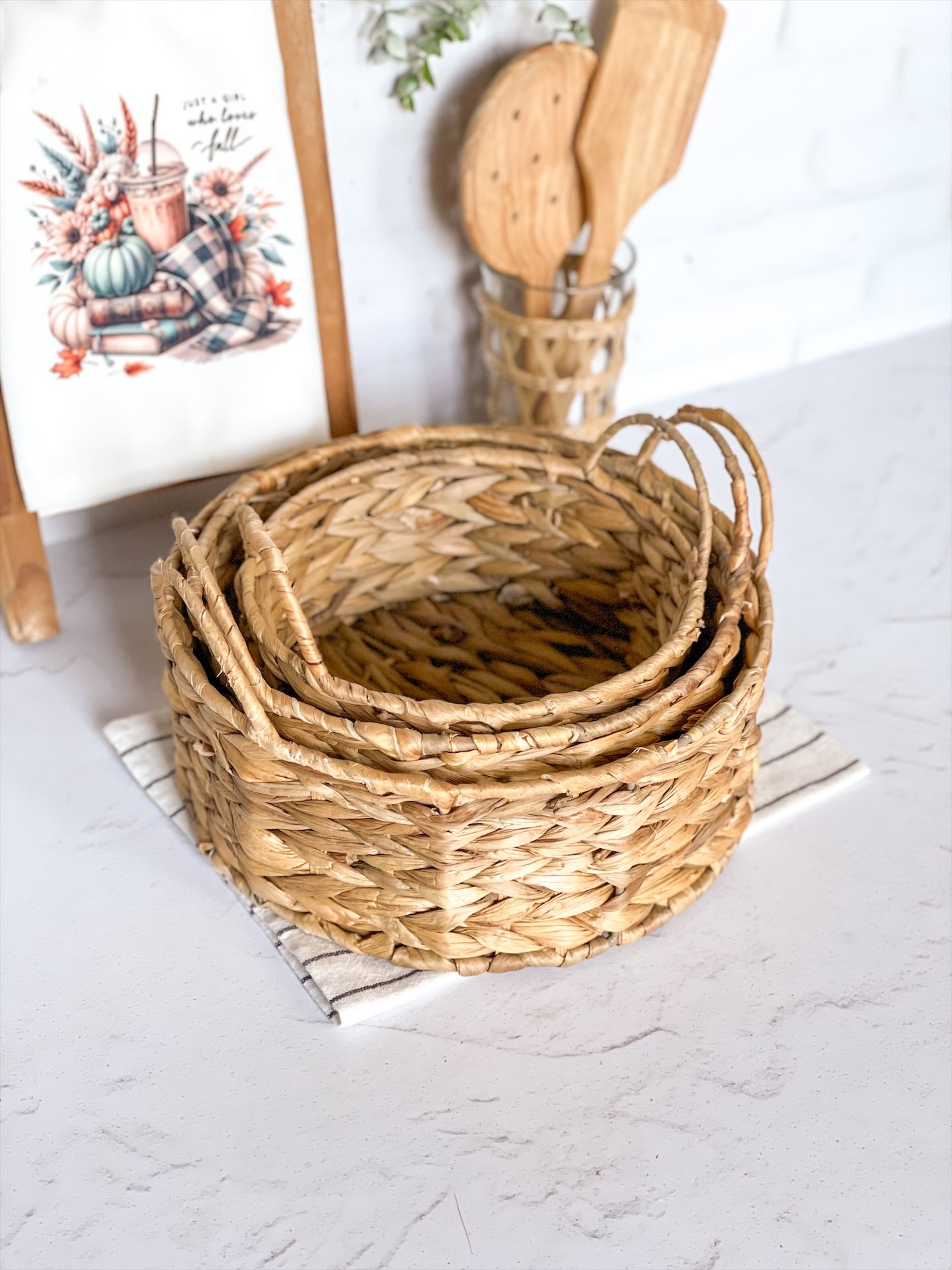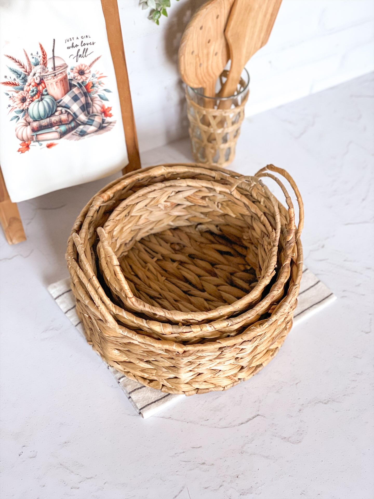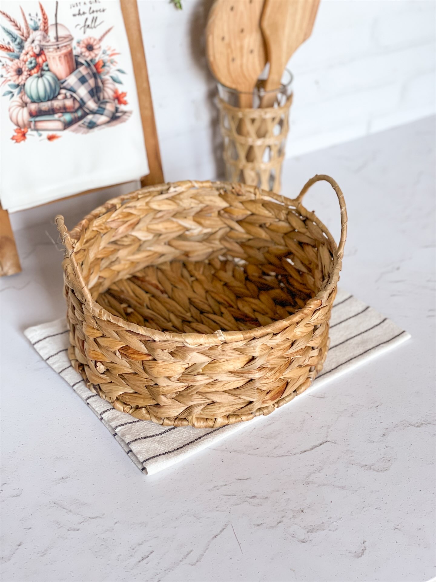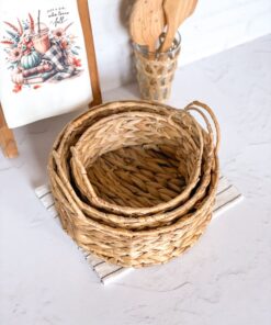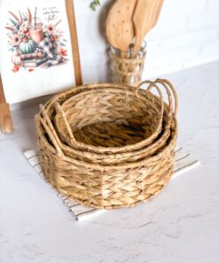 سبد حصیری گرد دستهدار متوسط