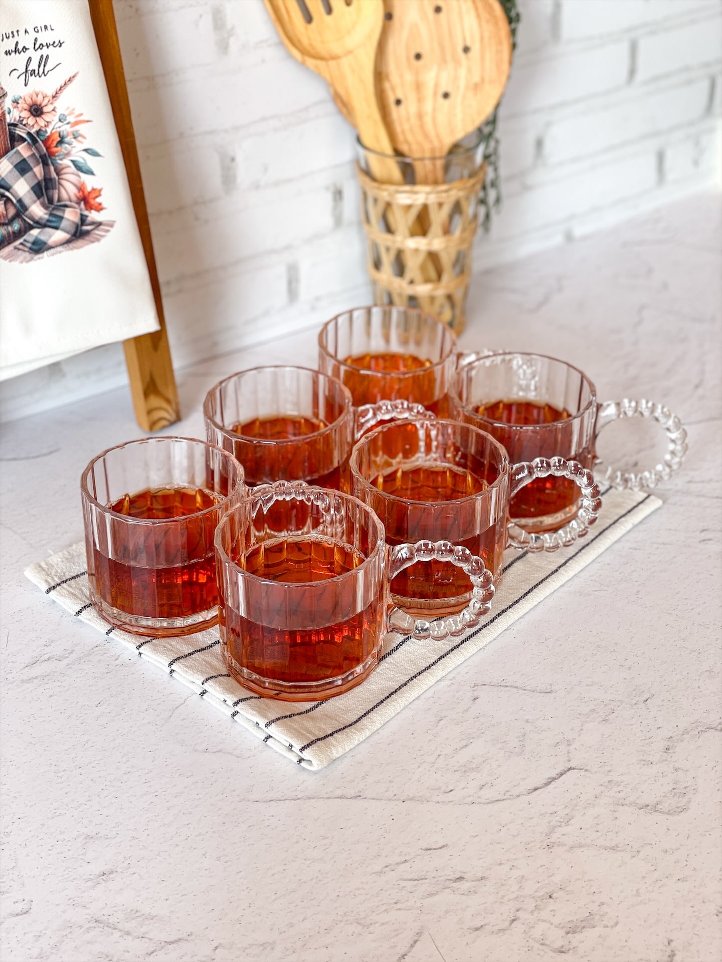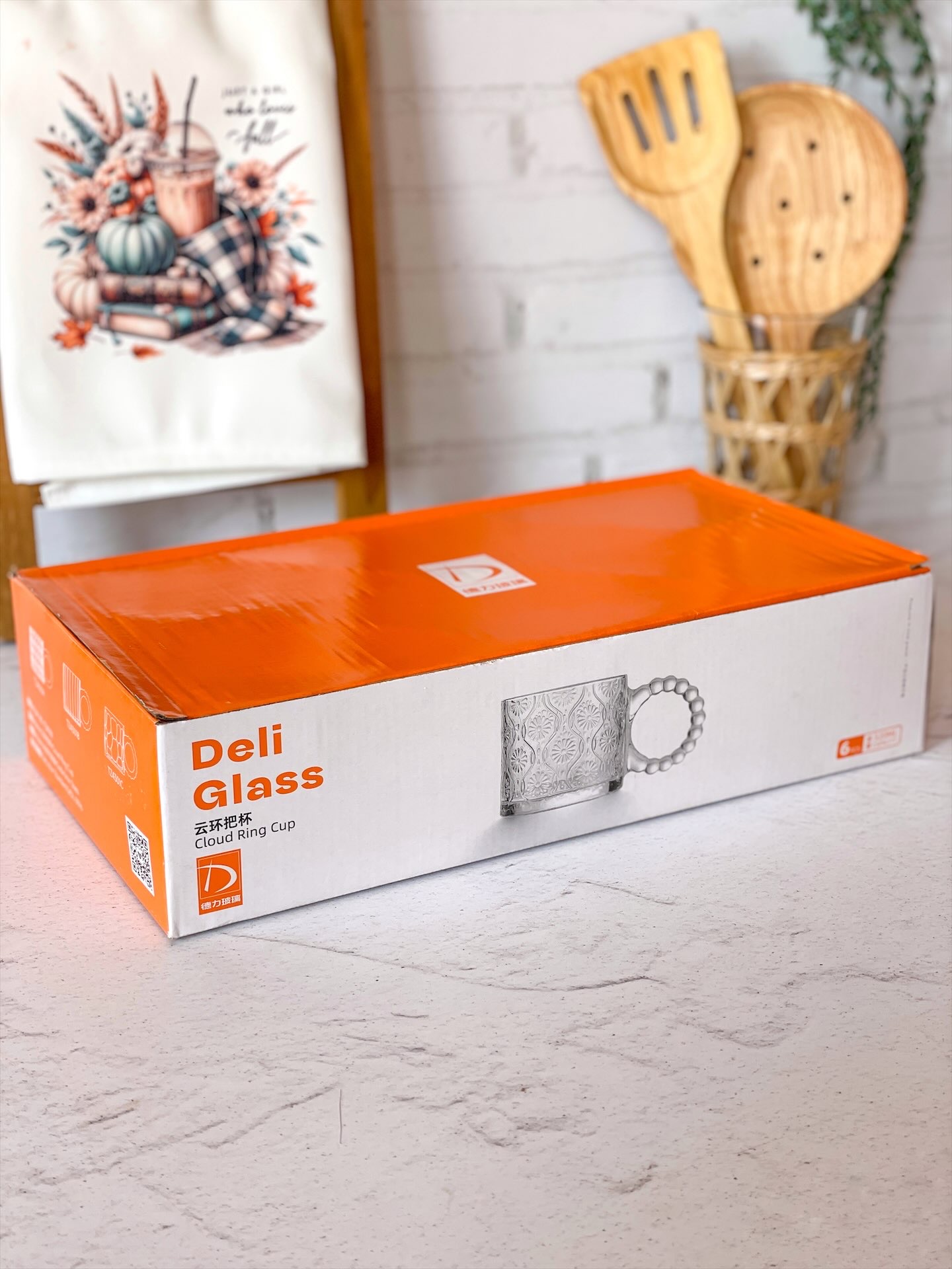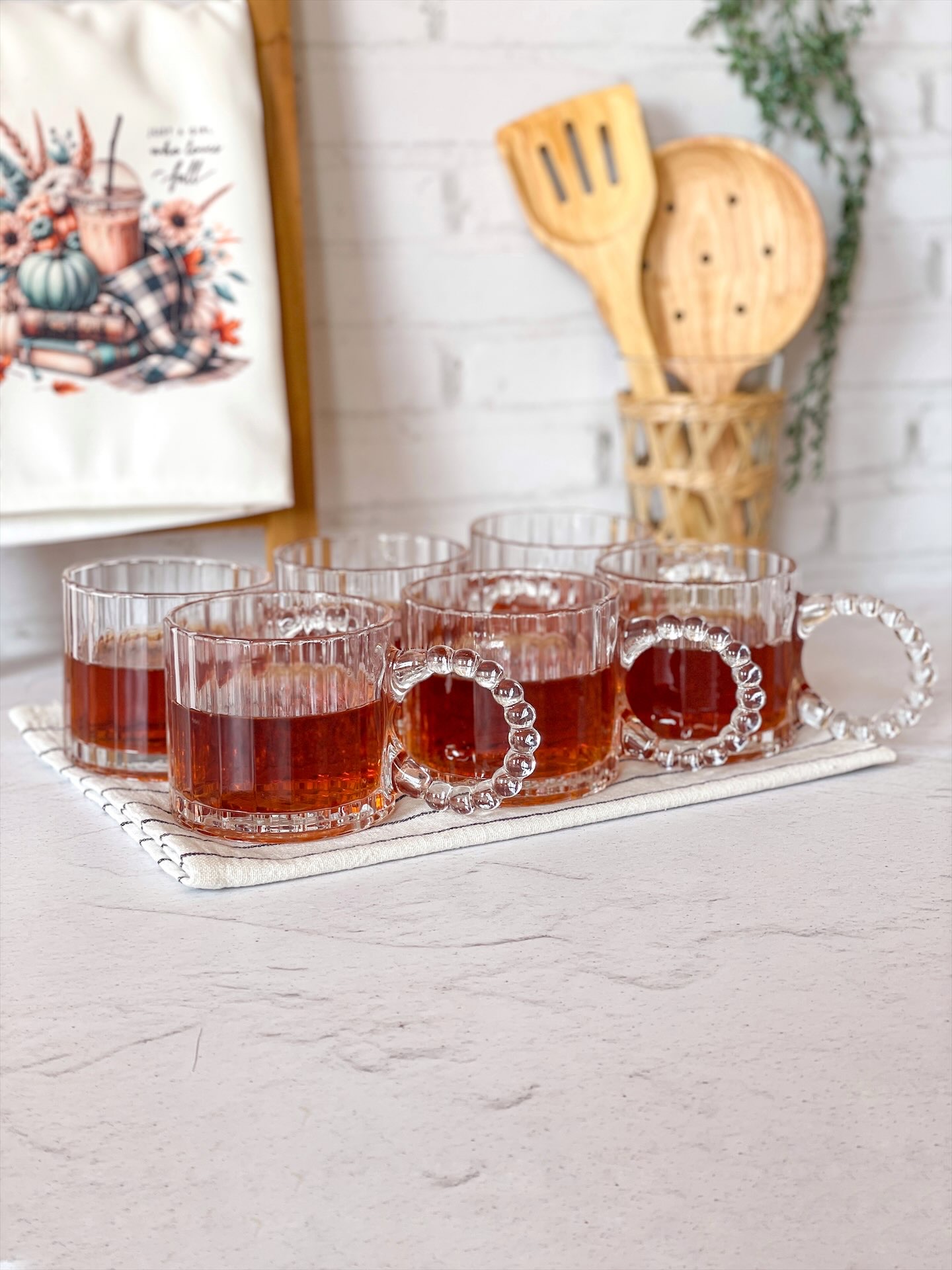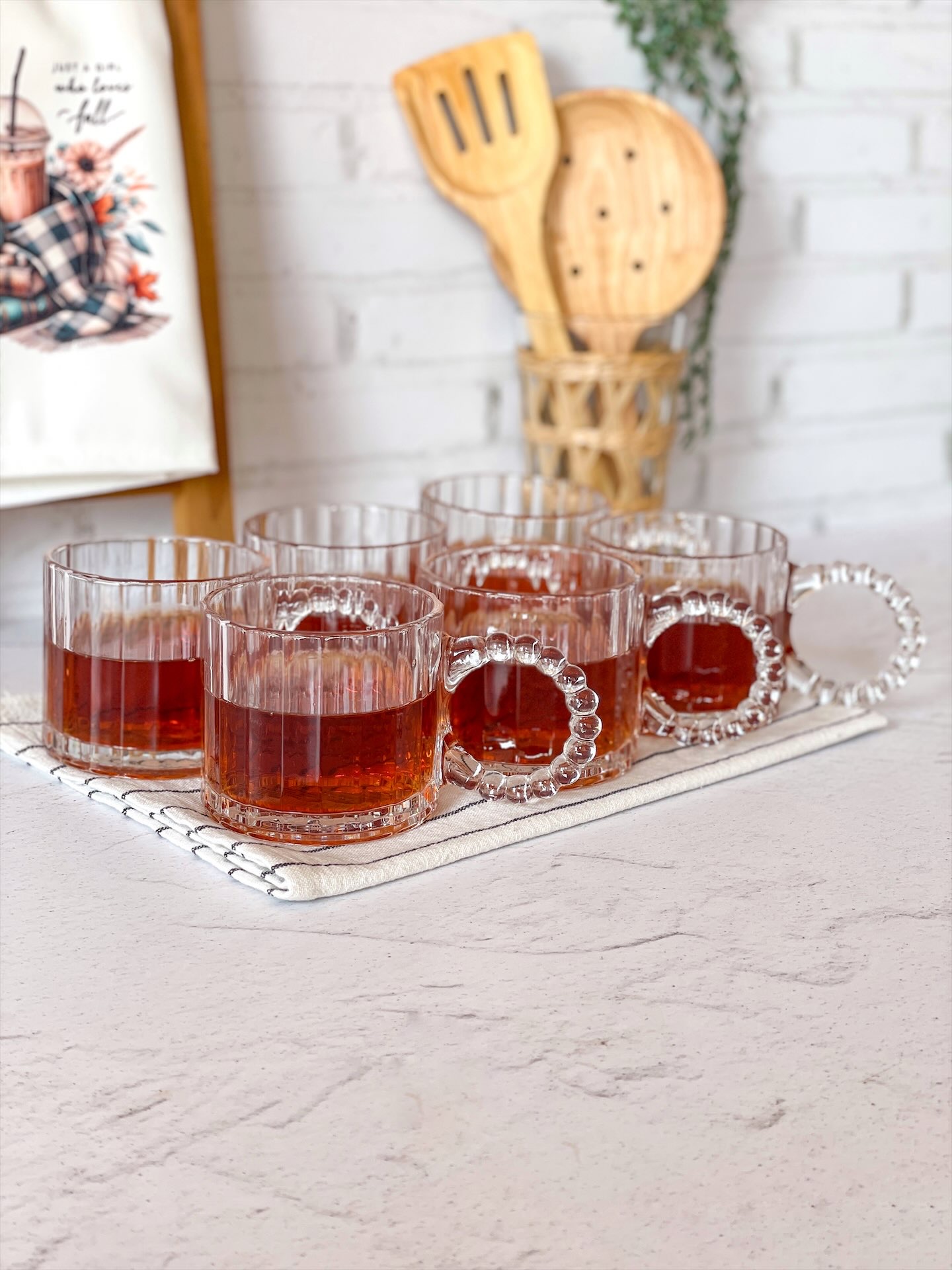 ست لیوان دسته مرواریدی راه راه شش عددی