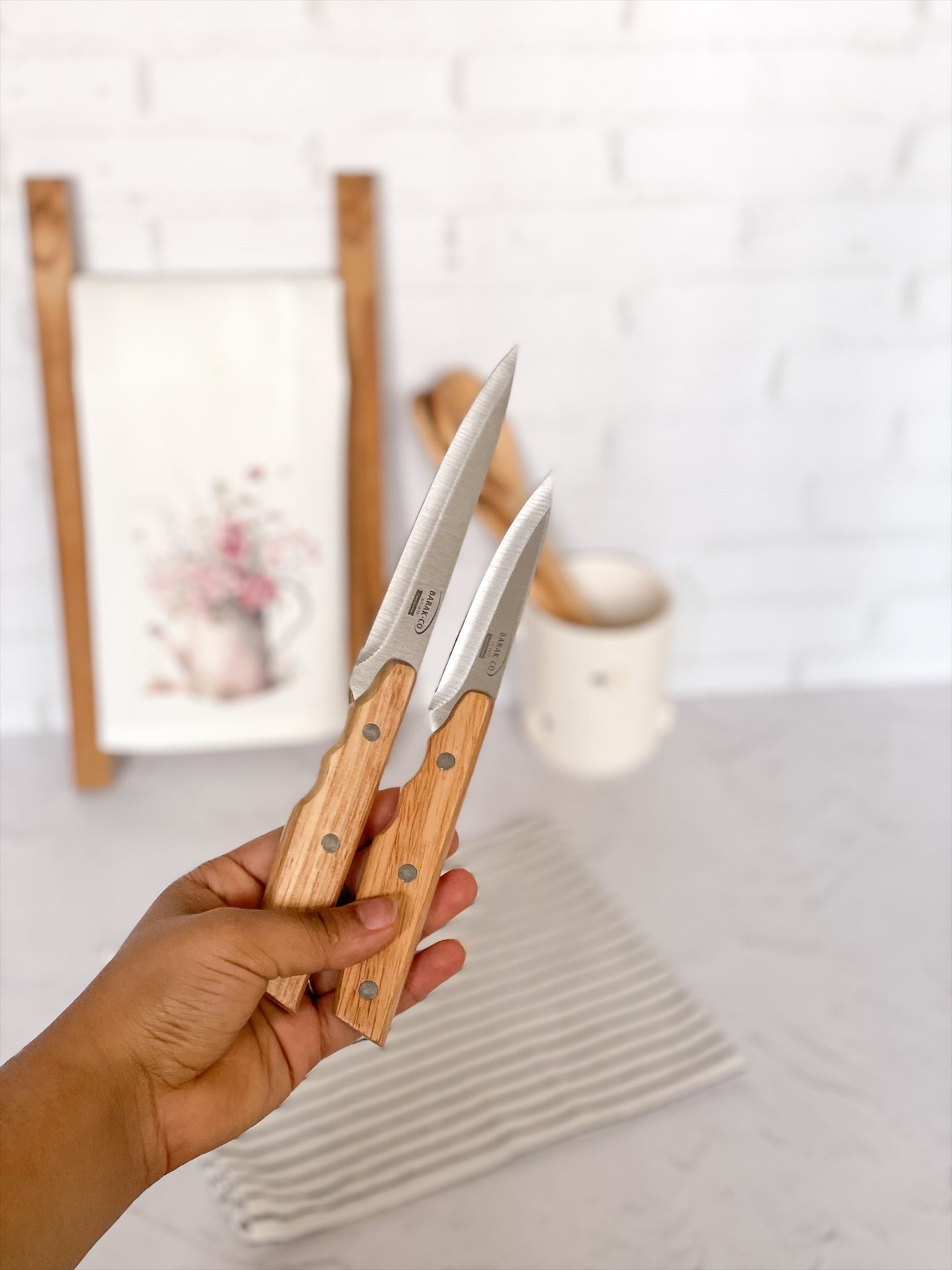 ست چاقو جفتی دسته چوبی